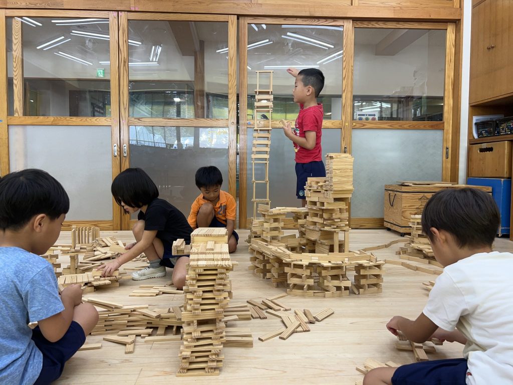 - 発達に応じたおもちゃで遊びながら、考えたり、工夫したりする力を育てます。